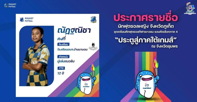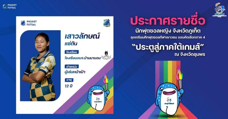 โรงเรียน อบจ.บ้านนาบอน ผู้บริหาร คณะครู ขอแสดงความยินดีกับคนเก่งของเรา ได้รับคัดเลือกเป็นตัวแทนนักฟุตซอลหญิง จังหวัดภูเก็ต ชุดเตรียมศึกฟุตซอลกีฬาเยาวชนแห่งชาติครั้งที่ 41 รอบคัดเลือกภาค 4 “ประตูสู่ภาคใต้เกมส์”